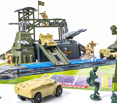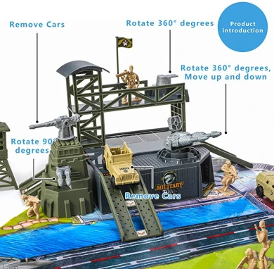 GOOD MILITARY BASE PLAYSET The military base set has real life designs and highly detailed weapons and equipment.All made from super strong, superior quality plastic material. Get a firsthand experience of the front lines of battle with this military pretend playset, military vehicles,army men and equipment. LEARNING THE BATTLEFIELD HISTORY Your children will find some of vehicles, warplane, army men and more to share with this equipment.Alls playset is a fantastic way for kids to learn about the hardware used in war and the historical significance behind these tools. ENHANCE HAND-EYE COORDINATION According to assemble this great play set,it can trained the child’s hand-eye equipment.Allying with action figures can have many benefits to a child’s development as it requires an active imagination. PLAYING FUN: This simple, large of military toys encourages children to play the way they want to play. No batteries, no plugs, and no instructions needed! PERFECT GIFT: This set will make the perfect gift for a military or action figure enthusiast. Created with realistic and detailed designs, your child is able create their own fun alone or even with friends! WARNING: Do not keep the small parts of the toy in mouth ,please let your child play this set under adult supervision.