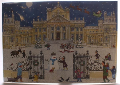 A delightful tradition Advent Calendar designed by Alison Gardiner. Beautifully detailed illustrations behind each door provide lovely surprises every day. Decorated with flitter. Size 30cm x 42cm . Christmas at the Palace. Snow is softly falling, covering the Palace in a layer of white, choristers sing carols whilst a regal snowman is built. Children play in the snow, while footmen decorate the courtyard. But none of them have noticed that Santa is on his way… Everyone is getting ready for Christmas. Find out what is going on at the Palace behind each window.