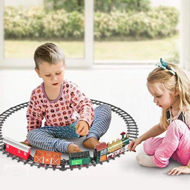 A CLASSIC TOY THAT MAKES FOR MEMORABLE PLAYTIMEAll Aboard! Shopping for the perfect holiday gift for that deserving kiddo. Looking for a toy that will have that little boy or girl jumping up and down in glee. This deluxe train set is guaranteed to have that cutie pie smiling from ear to ear! It comes with 4 train cars and tracks to inspire hours of active, fun-filled pretend play. And it’s thoughtfully powered using 2 X AA batteries (not included). This means your little one can have a blast wherever they want without the limitations of a power outlet. Go ahead, give them the gift of beautiful imagination.Quality Meets Aesthetics No dealing with toys that break on day one. Made using high-quality plastic, this train set for kids ensures the fun and smiles keep chugging along. And it’s quite the eye-pleaser too! You’ll love the lovely mix of colour accentuated by a classic locomotive design oozing with 19th century charm. Looking for a cute Christmas train set to place under the tree. You’ve found imagination.Quae’s why you’ll love this battery-powered train set: