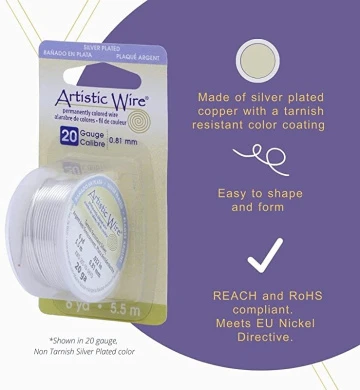 | Options | Tarnish Resistant Silver – 24 Gauge / .51 mm, 10 yd / 9.1 m, Tarnish Resistant Silver – 20 Gauge / .81 mm, 6 yd / 5.5 m, Ice Blue – 26 Gauge / .41 mm, 15 yd / 13.7 m, Tangerine – 26 Gauge / .41 mm, 15 yd / 13.7 m, Seafoam Green – 22 Gauge / .64 mm, 8 yd / 7.3 m, Fuchsia – 26 Gauge / .41 mm, 15 yd / 13.7 m, Gold Color – 26 Gauge / .41 mm, 15 yd / 13.7 m, Tarnish Resistant Silver – 34 Gauge / .16 mm, 30 yd / 27.4 m, Gold Color – 20 Gauge / .81 mm, 6 yd / 5.5 m, Lemon – 26 Gauge / .41 mm, 15 yd / 13.7 m, Gold Color – 18 Gauge / 1.0 mm, 4 yd / 3.6 m, Lemon – 22 Gauge / .64 mm, 8 yd / 7.3 m, Lemon – 20 Gauge / .81 mm, 6 yd / 5.5 m, Gold Color – 22 Gauge / .64 mm, 8 yd / 7.3 m, Christmas Green – 26 Gauge / .41 mm, 15 yd / 13.7 m, Orchid – 20 Gauge / .81 mm, 6 yd / 5.5 m, Gold Color – 24 Gauge / .51 mm, 10 yd / 9.1 m, Gold Color – 30 Gauge / .26 mm, 30 yd / 27.4 m, Tarnish Resistant Silver – 18 Gauge / 1.0 mm, 4 yd / 3.6 m |
