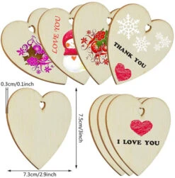 Obmwang 50 Pieces 7.6cm Natural Heart Wood Slices, DIY Wooden Ornaments Unfinished Predrilled Wooden Heart Embellishments With Natural Twine For Wedding,Thanksgiving,Christmas, Valentine