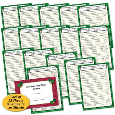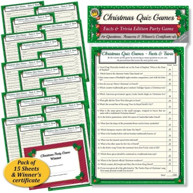 Be the winner of this game by answering as many questions about Christmas traditions, facts and trivia as you can; the person or team who scores the most points wins. Each pack contains 15 identical quiz sheets, answers sheet, and winner’s certificate. It’s interactive, good fun and priced to please even the smallest of budgets.