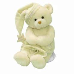 My First Nighty Nights is a 24cm musical soft toy from American soft toy designer Gund . This Musical Bear soft toy is an ideal companion for a baby’s bedroom as ‘Twinkle Twinkle Little Star’ helps baby prepare for sleeping. Just press the Bear’s paw and ‘Twinkle Twinkle Little Star’ will start playing as he rocks his head from side to side and small lights flash in his feet. Instilling the Bedtime ritual is an important milestone for both baby and tired parents and this adoreable Musical Bear Soft Toy is an excellent support. Comes with three replaceable AA batteries. Suitable for 0+