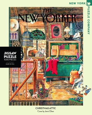 Christmas Attic – New Yorker Cover by Artist Jenni Oliver, originally published on December 21st, 1987. 1000 Piece Jigsaw Puzzle. Finished Puzzle Size: 70cm x 49cm . Made in the USA. Recommended Age: 10+ Years