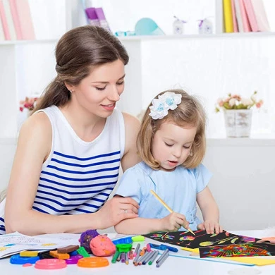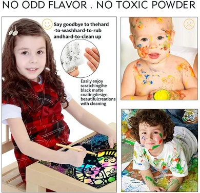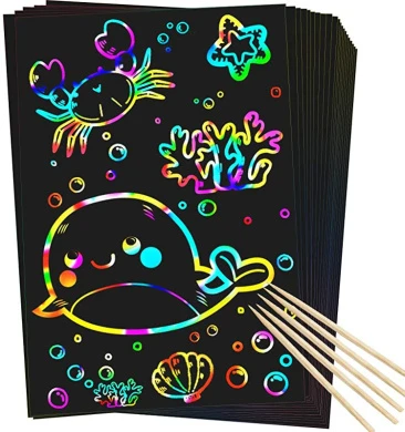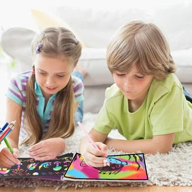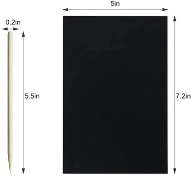 Simple to use & easy to drawRMJOY scratch art notepads can simply use the wooden styluses included to easily scratch away the black film to reveal the beautiful rainbow colours! Kids can use the scratch off doodle pad to jot down notes, etch doodles, and create cool illustrations and designsDelightful craft Makes an excellent children art supplies and grown-up artists! Immerse your kids in this delightful black paper scratch pad design away from e-sports games. Inspire your toddler to create physical representations of their imagination, helping encourage communication skillsHigh quality scratch off paper art: The gorgeous rainbow pattern under the black matte surface,and don’t worry, scratch board art paper are THICK and won’t being easily torn. This scratch and sketch paper is sufficient in quantity of various in kinds, suitable for you to use or send to others as a novel giftsExtensive Usage you can use these magic colour scratch papers to do art works by drawing scratching painting and more with your students at school at home to enhance their imagination and hands-on ability. The fun crafts for kids can be put in handbags when you go out and keep the kids entertainedGood way to reduce pressure Our craft party favours for kids is a funny and innovation toy for kids,also a very good way to train kids hands-in skills, intelligence development and perfect for travel and family road trips.Scratch It drawing benefits Your children will love the eye-popping colours, and fascinating process of uncovering rainbow-coloured designs of this black scratch off birthday and will focus on this art doodling notebook. Want to turn ‘me’ time into ‘we’ time. Let’s scratch you a picture!Arts and crafts for girls is one of the best activities to help toddlers and preschoolers develop essential communication and social skills. Help your little artists express their imagination